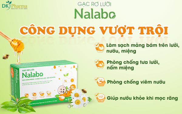 - Gạc rơ lưỡi Nalabo - Là 1 sản phẩm của Công ty DK Pharma có uy tín lịch sử hơn 20 năm trong ngành dược