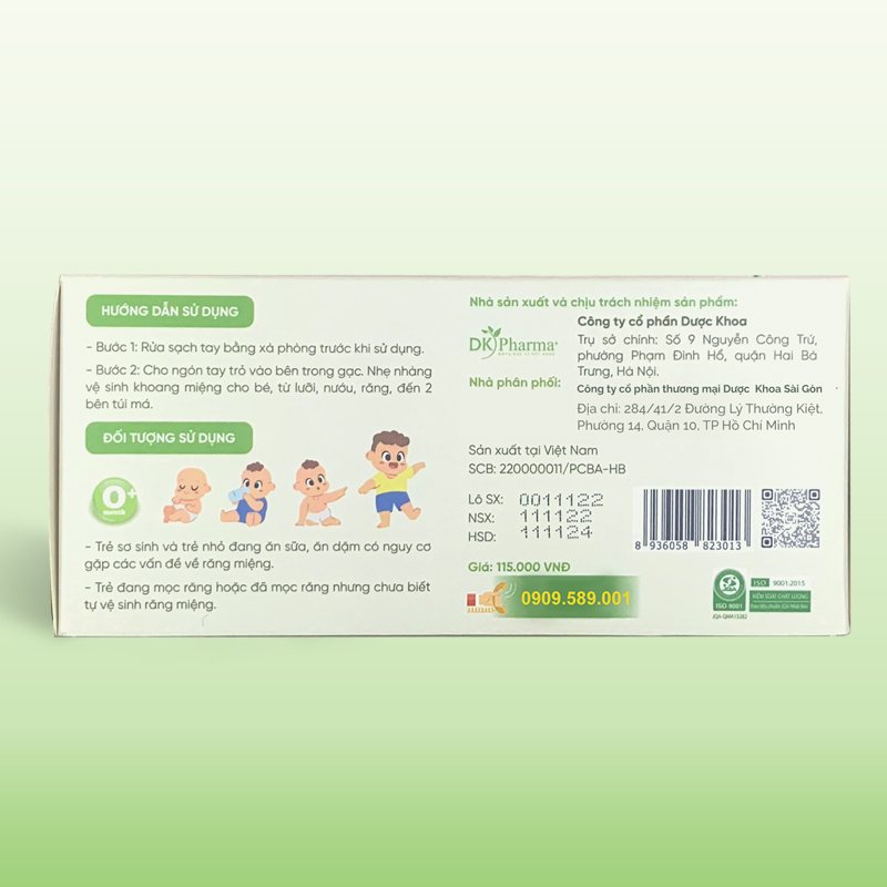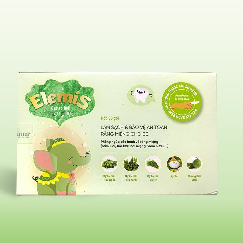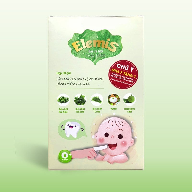 Mỗi gạc mềm được tẩm bởi: Dịch chiết rau ngót, Dịch chiết chè xanh, Dịch chiết hẹ, Hương dưa lưới, Xylitol, NaCl, NaHCO3.