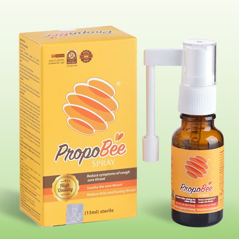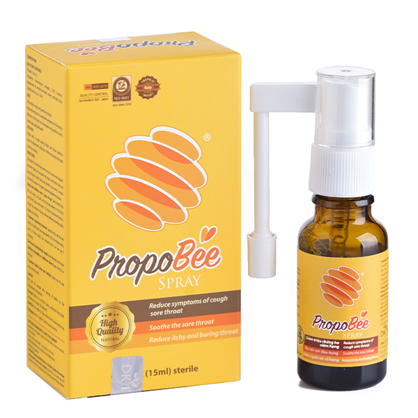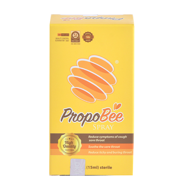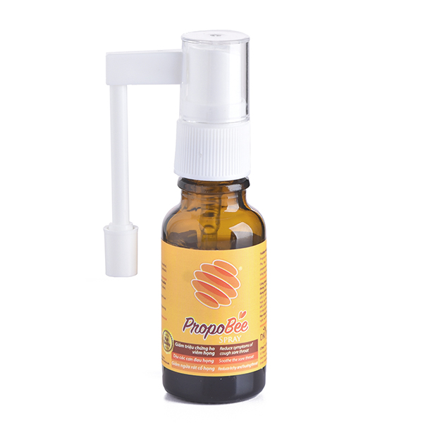 Xịt họng PropoBee Spray chứa Keo Ong Propolis - Papain dạng phức hệ liên kết chống viêm mạnh gấp 2 lần so với thành phần đơn trị, giúp giảm cơn ngứa, rát họng và chống viêm họng, viêm hô hấp.